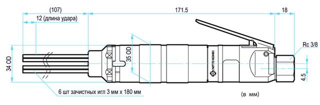 Голчастий пучковий зачисний молоток пневматичний Nitto Kohki Jet Chisel JT-16