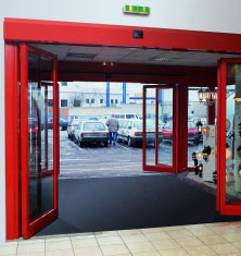 Врізні петлі дверних панелей і бічних стулок дають змогу відчиняти двері практично на повну їх ширину. У разі виникнення аварійної ситуації широкий прохід використовується як запасний вихід. У літній період широке розкриття може бути використане для вентиляції будівлі. Панелі можуть мати подвійне скління або загартоване ударостійке скло.