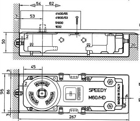 Маятниковий floor spring Casma Speedy M68 (Італія) сумісний із нижніми маятниковими петлями типу PT patch fitting